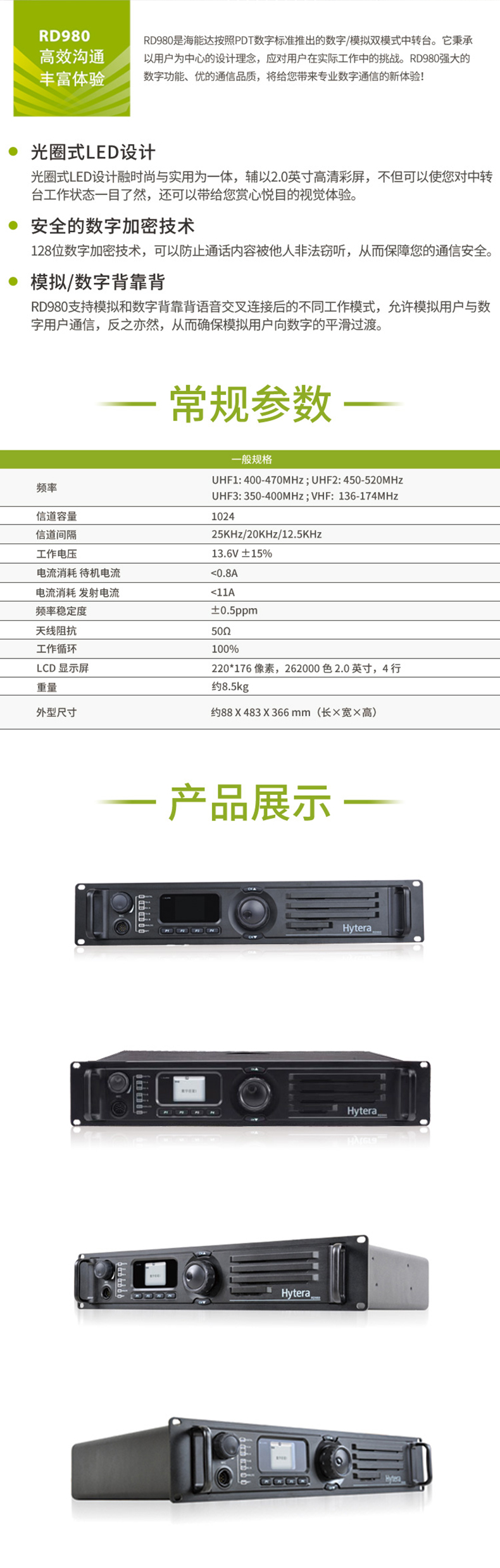 RD980 50W大(dà)功率高端數字中轉台基站(zhàn) 數模兼容 覆蓋可(kě)達半徑20KM