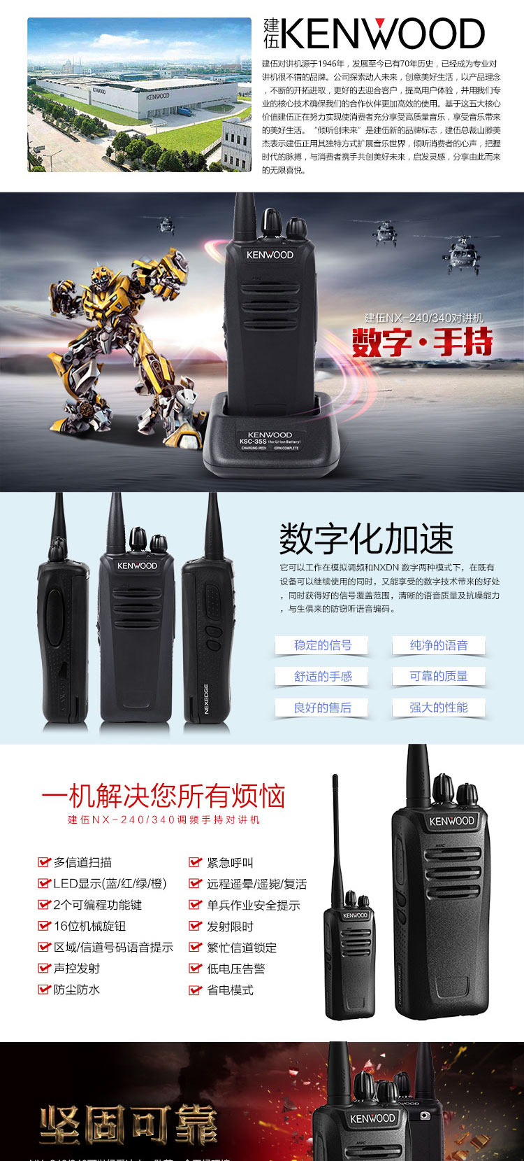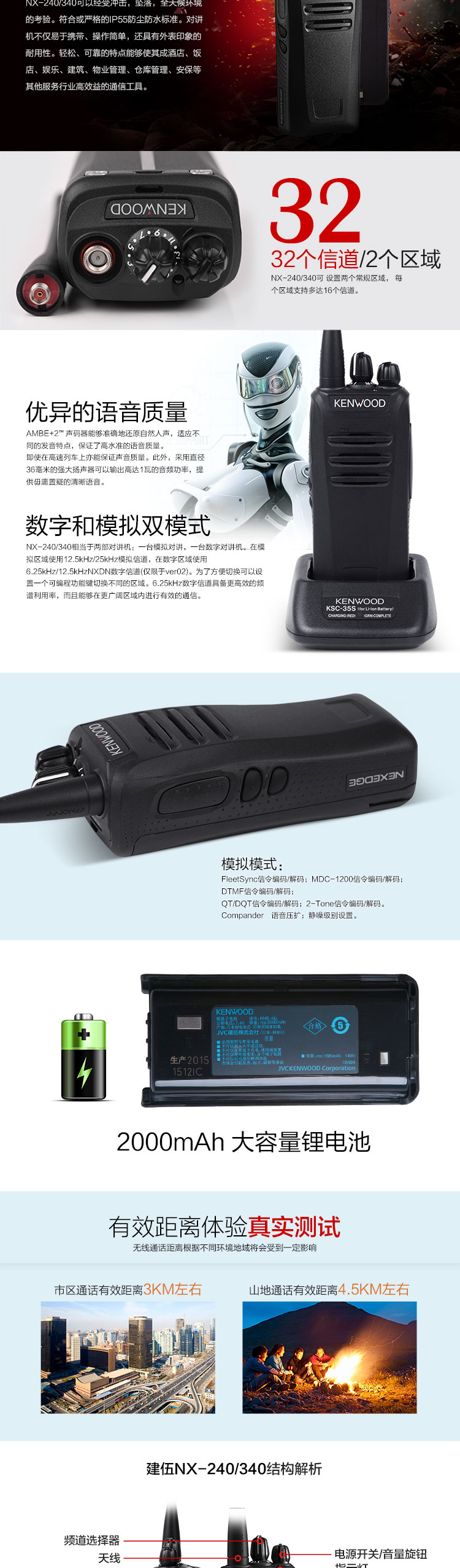 建伍(KENWOOD) NX-348 商業商用民(mín)用專業數字對講機(jī)大(dà)功率穿透400-470MHZ
