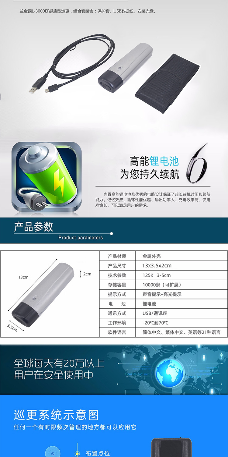 蘭德華感應式巡更棒新款L-3000EF-X2